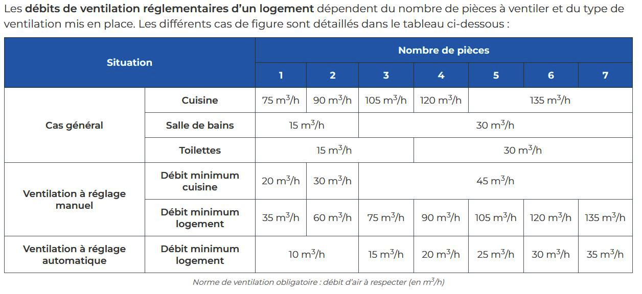 Les extractions se font par les pièces humides: Cuisine, Salle de Bains, WC.