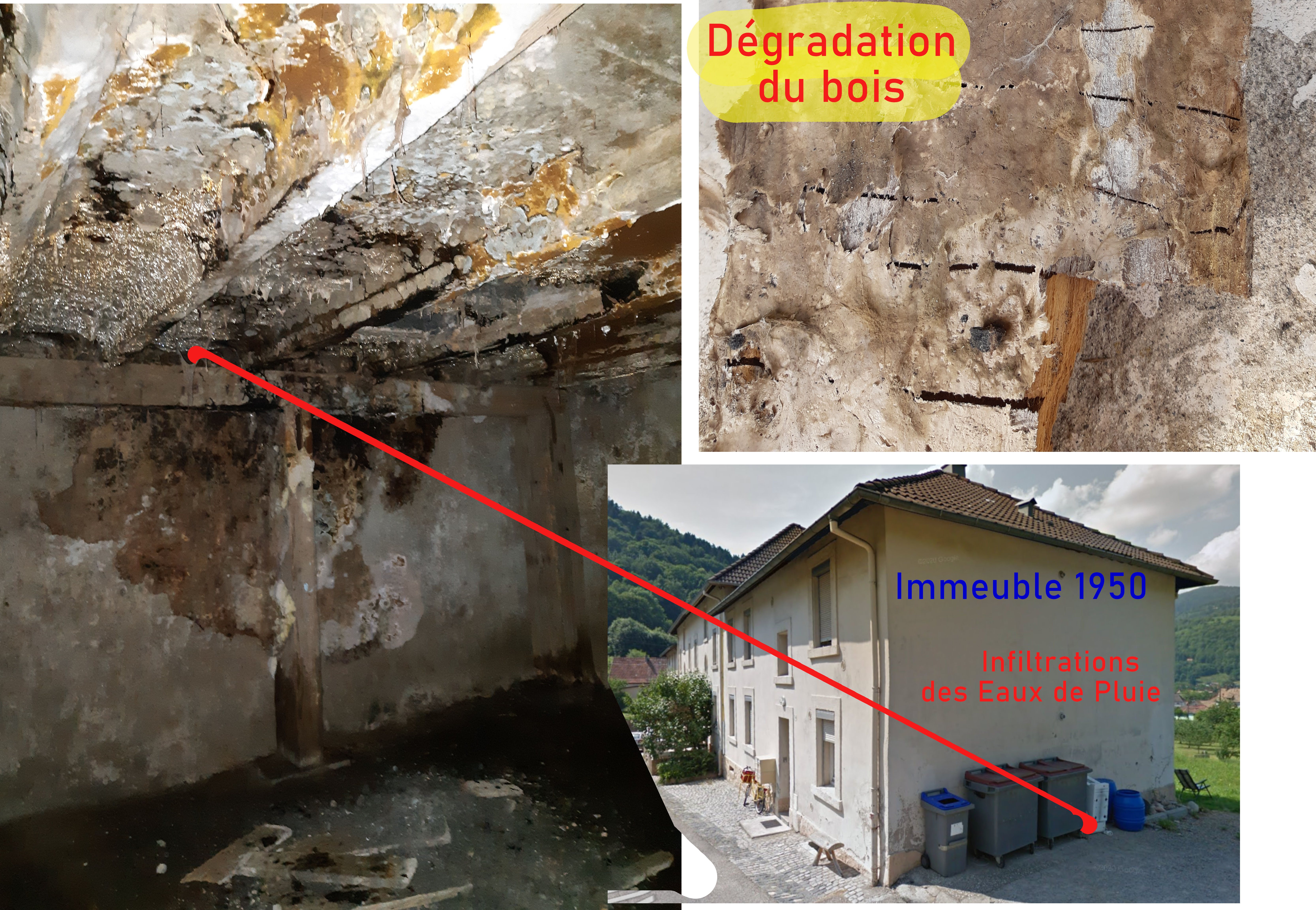 De même, l'entretien et les habitudes des occupants sont ensuite primordiales. Cela se traduit par des désordres du bâtiment, les pathologies en sont multiples.